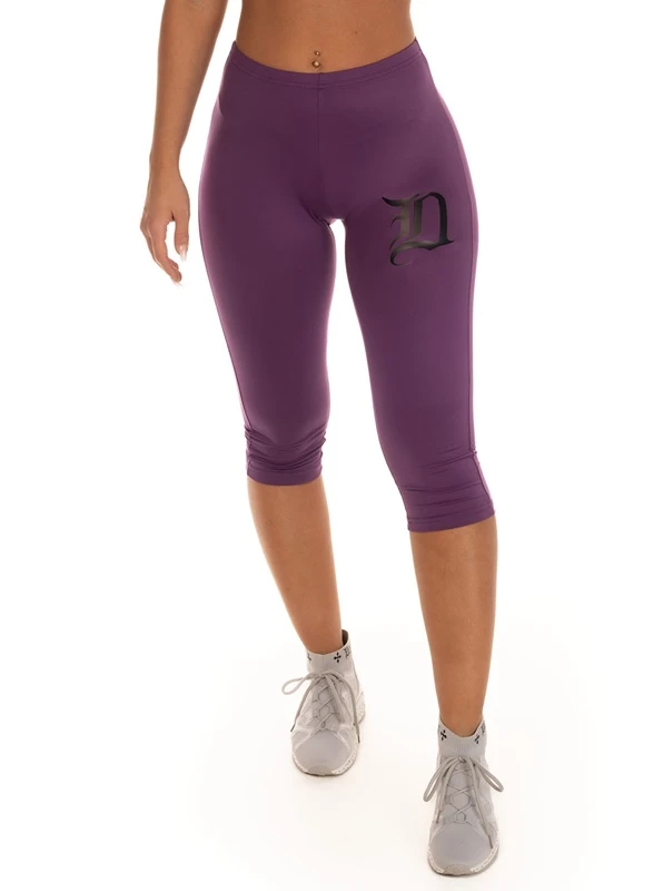 Dirty Capri tights / Cycling pants in purple with black print on the thigh. Softex fabric that is super soft and quick drying with a lot of stretch and comfort.