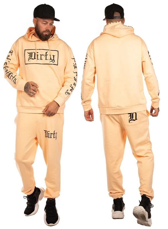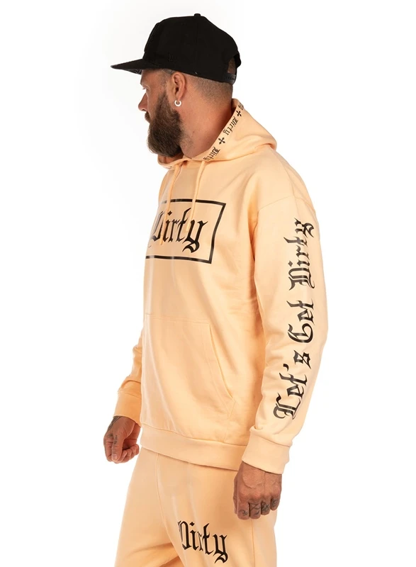 Dirty Hoodie in a really nice color with print around the hood, arms and front of the chest. Kangaroo front pocket.