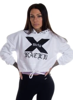 Oversized cropped hoodie with drawstring at the waist. Wide sleeves and a large hood. Really cozy and comfortable. Dirty X-rated print in front and print on the hood.