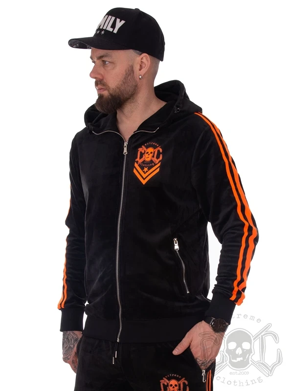 EXc 2 Stripe Velour Hoodie, Black N Orange