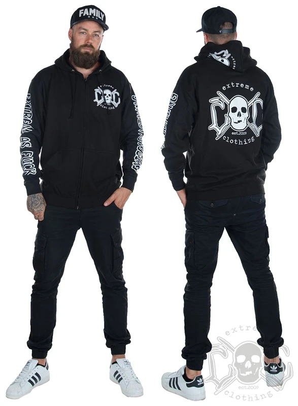 EXc E A F Men Zip Hoodie Black N White