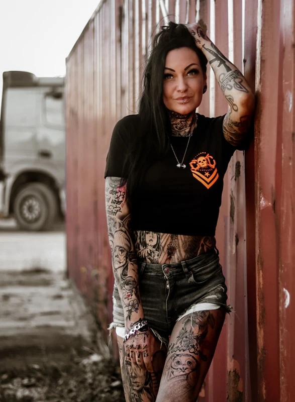 EXc New Skull Logo Cropped Tee, Black N Orange