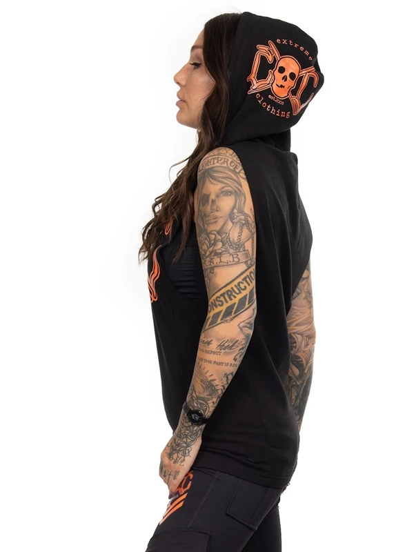 EXc Sleeveless Unisex Muscle Hoodie, Black N Orange